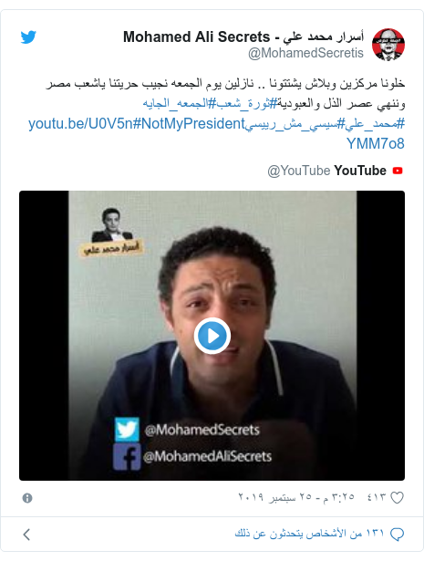 10 مقاطع فيديو على يوتيوب تهز الارض تحت اقدام السيسي ورجل أعمال موالي للاخير يقدم شيك بـ5مليون جنيه لمن يقتل محمد علي صورة