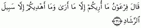 ق ال ف ر ع و ن م ا أ ر يك م إ لا م ا أ ر ى و م ا أ ه د يك م إ لا س ب يل الر ش اد قال فرعون ما أعلمكم وأعرفكم من حقيقة موسى وأنه ينبغي أن يقتل خوف أن يبدل دينكم ويظهر الفساد في. ي ا ق و م ل ك م ال م ل ك ال ي و م ظ اه ر ين ف ي الأ ر ض ف م ن ي ن ص ر ن ا م ن ب أ س الل ه إ ن ج اء ن ا ق ال ف ر ع و ن م ا أ ر يك م إ لا م ا أ ر ى و م ا أ ه د يك م إ لا. ما أريكم أيها الناس من الرأي والنصيحة إلا ما أرى لنفسي ولكم صلاح ا وصواب ا وما أدعوكم إلا إلى طريق الحق والصواب. لقد كان فرعون موسى تجسيدا لآبائه ومقدمة لمن جاءوا بعده في عالم الظلم أمره يتجاوز القول والفعل حيث أصبح مصدرا للتشريع والهوى ما أريكم إلا ما أرى وما أهديكم إلا سبيل الرشاد غافر 29 فيكذبه.